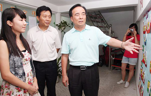 时任东莞市人大常委会副主任冯同恩(右一)视察我院社会工作教研室