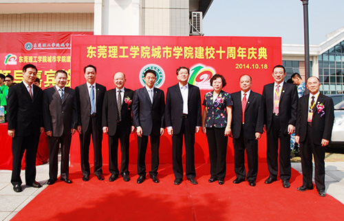 时任广东省教育厅副厅长魏中林、东莞市人民政府副市长喻丽君等领导和嘉宾出席庆典大会