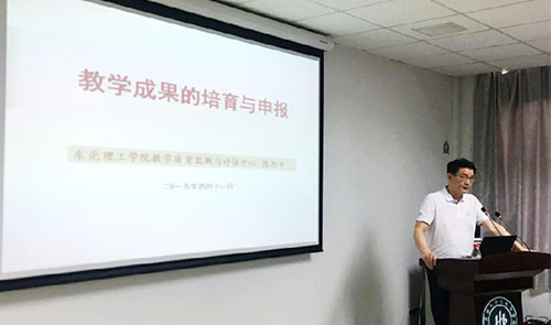 4月11日下午,教务处举办 “教学成果的培育与申报”专题讲座,邀请东莞理工学院教学质量监测与评估中心主任陈想平任主讲人。院长王卫平、副院长高香林会同各教学单位负责人以及教学成果奖申报团队主要成员聆听了讲座。 陈想平