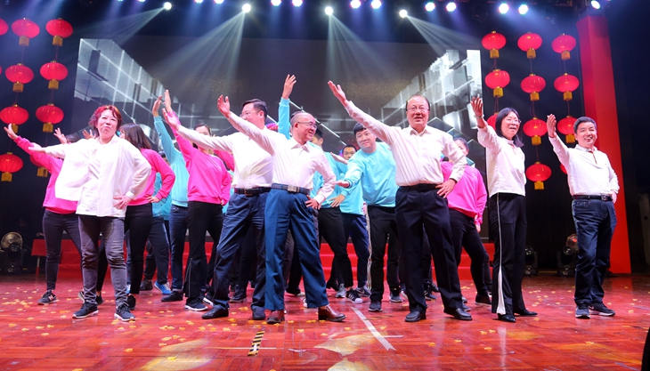 一元复始,万象更新。1月4日晚,综合馆内华灯张彩,喜气洋洋。全校教职工齐聚一堂,举行2020年教职工迎新春集体舞大赛载歌载舞,迎接新春的到来。 东莞理工学院党委副书记、城市学院董事吕琦元,城市学院董事长代表、广东鸿发