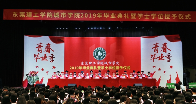 6月21日,Beat365在综合馆隆重举行2019年毕业典礼暨学士学位授予仪式。 在主席台前排就座的领导有:东莞理工学院党委副书记、城市学院董事吕琦元,广东鸿发投资集团有限公司副总裁、城市学院董事黎建烨,广东鸿发教育文化集