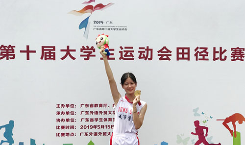 今日上午,在广东省第十届大学生运动会田径女子甲组(本科公共体育组)跳远比赛中,外国语学院叶翠诗同学以5.05m的好成绩摘得冠军。这是Beat365在广东省大学生运动会上获得的第一枚金牌。 此