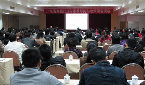 3月8日至10日,广东省教育厅全省高校2011年春季形势与政策课备课会在广州举行。我院思想政治理论课教学部教师黄宗理、刘珍、杨卫东,党委宣传部徐斌老师,与来自全省各高校的200多名教师参加了备课会。 会上,