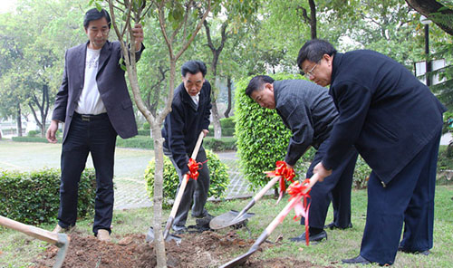 又是一年芳草绿,校园处处好春光。为进一步美化校园环境,3月11日上午,院领导朱志德、程发良、朱冰、张林,机关各处室负责人及部分教职员工相继来到鸳鸯湖畔植树。 在植树活动中,大家分工合作,有的挖坑,有的扶树苗