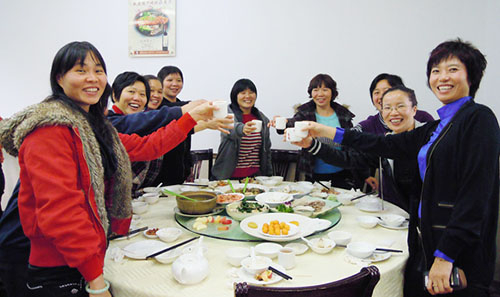 3月8日,我院发展与联络办公室教工与樟村、堑头社区22位劳务派遣人员怀着轻松愉快的心情,在大王洲喜聚一堂,欢度“三八”国际劳动妇女节。 在春色满园的农家小岛上,热情、纯朴、勤劳的大嫂们畅所欲言,尽情的谈论着工