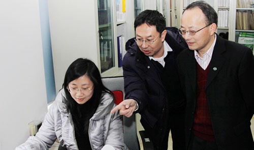 学术副院长、院迎评促建领导小组副组长、迎评促建办公室主任程发良教授在计算机与信息科学系检查迎评工作 从15日开始,我院150多名教师留校加班收集整理 “迎评促建”方面的资料。 按照教学计划,1月15日学生完成本学期
