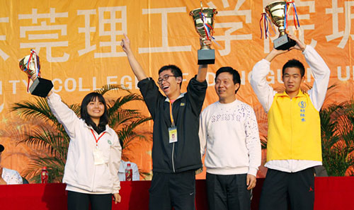 安院长为获奖者颁发奖杯 “我们获得第一名” 打破校运会纪录的同学合影 11月26日,为期两天的校运会在田径场完美落幕。 据悉,本次校运会共有1400多名师生参与角逐20多个比赛项目,取得了可喜的成绩,先后共有12人次刷新了