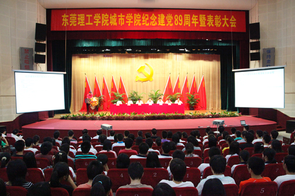 表彰大会会场250名新党员庄严宣誓领导为先进集体和优秀个人颁奖党委书记朱志德在大会上讲话优秀教师、学生共产党员代表发言 7月1日,中共东莞理工学院城市学院委员会召开党员大会,隆重纪念中国共产党建党89周年,表彰2009-2010学年度