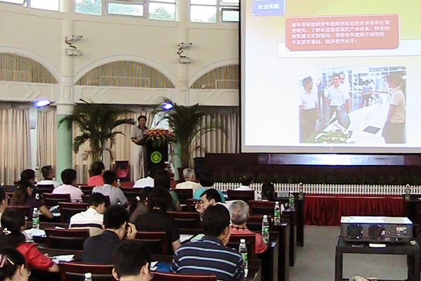 院督学陈丁堂在会上展示我院《基础》课程建设的成果 在6月25日召开的广东省高校思想政治理论课第二批优质课程验收会议上,我院《思想道德修养与法律基础》(以下简称《基础》)课程顺利通过验收,并获得“优秀”。 据悉,在这次会议