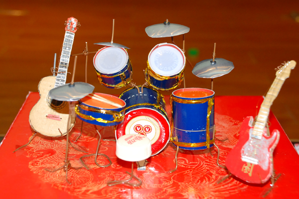 5月30日,首届“环保创意设计大赛”决赛在学术报告厅举行,来自各系部的200多名师生观看了比赛。 本次比赛共收到60多件作品,通过网上票选、复活赛等形式的评选,15件作品进入了决赛。RecoveryDay的“架子鼓与吉他”及乐活2012小组制作的