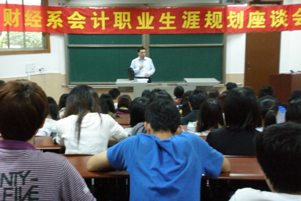 4月22日,财经系第三届会计知识文化月系列活动之会计职业生涯规划座谈会在五号楼阶梯室举行。东莞东正会计师事务所所长周华平应邀出席会议。 周所长对今年会计专业大学毕业生的就业前景做了展望,介绍会计专业学生不同的职业发展