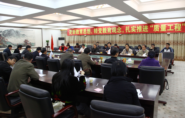 12月9日,由教务处组织的以“更新教育思想,转变教育观念,扎实推进质量工程”为主题的教学工作研讨会在四号楼315会议室召开。学术副院长程发良教授、督学陈丁堂教授出席会议,教务处负责人、各系部正(副)主任、各“中心”及教研