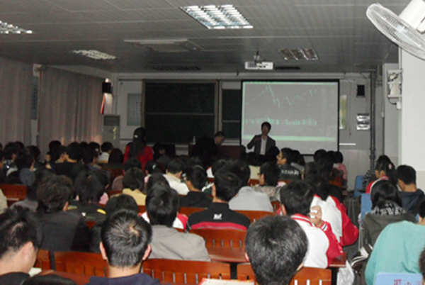 12月10日,我院经济学会特邀广发证券首席分析师陈贵荣对参加模拟炒股大赛的同学进行股票实用技巧培训。 陈先生分析了世界各国的股票走势,并指出股票上涨的经济原因。通过股票的基本面分析和技术面分析,对股票的操作技巧进行了全