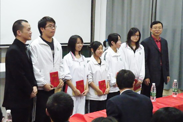 领导和嘉宾为奖学金获得者颁奖 12月10日,金融与贸易系举行“大童奖学金”颁奖会议。院办主任王玉、金贸系总支书记龙卫洋、大童保险代理公司东莞分公司经理刘烨,为5位学生颁发“大童奖学金”。 据悉,该奖学金由大童保险代理公司