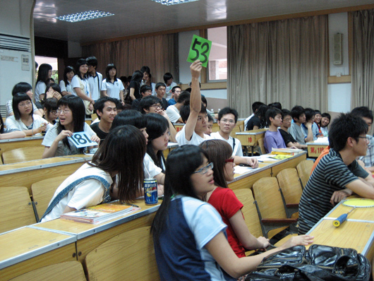 4月15日,管理系在5号阶梯教室举行第三届模拟市场招商竞投会。这次招商竞投会主要目的是让大学生通过自主经营,亲身感受商海的酸甜苦辣。竞投采用拍卖的形式,买价不设上限,价高者得。 大会场面异常火爆,100余名师生集聚一堂。本