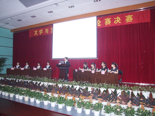 4月17日,文学与艺术系首届辩论赛总决赛在学术报告厅举行。 进入决赛的专科组辩手分别是正方06级文秘,反方07级音乐表演,辩题为《大学有没有必要安排新生上自习》;本科组正方辩手是05级汉语言文学(2)班,反方为07级新闻传播,辩