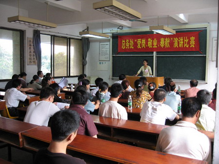 为积极响应院工会即将举行的以“爱岗、敬业、奉献”为主题的演讲比赛,11月15日,总务处工会小组在3号楼308课室举行了选拔赛,8位参赛选手采取抽签排序、评委现场打分的办法进行比赛。 经过近1个小时的比赛,产生出一、二、三