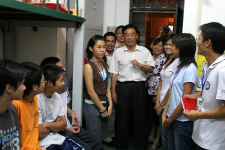 新生报到入住之后,他们的思想情绪怎样,生活用品是否备齐,生活上有什么困难与要求,学院领导从新生进校第一天起就非常牵挂和关心这些问题。 9月16日上午,院长安少华教授来到饭堂,与新同学共进午餐,了解他们的家庭、高考