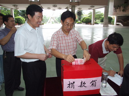 28日上午10:05分,学院四号楼大厅救灾捐款点收到第一笔捐款,总数1670元。 由学院组织的这次捐款,旨在救助受第4号热带台风“碧利斯”及低压槽影响的粤北、粤东和珠三角部分地区的受灾群众。 根据省教育厅《关于开展教育系