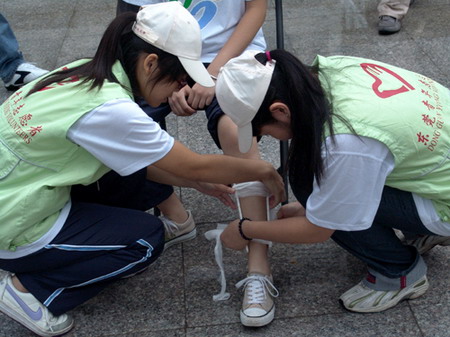 为纪念唐山大地震三十周年,共青团东莞市委员会、东莞市地震局、东莞市青年志愿者协会、东莞市卫生局团委、东莞理工学院团委在东莞理工学院松山湖校区共同举行东莞市志愿者服务队成立授旗仪式和地震应急医疗救护演练。我院12名