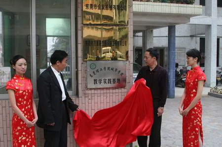 3月16日,我院党委书记朱志德同志、副院长林世俊教授、机电系主任黄健求教授来到东莞市金业机械有限公司。在公司厂长陪同下举行“东莞理工学院城市学院教学实践基地”挂牌仪式。 据悉,东莞市金业机械有限公司主要是作为我院机