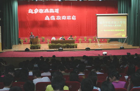 为了让学生们进一步了解职业规划方面的知识, 4月29日晚,城市学院首届大学生职业规划大赛讲座在大礼堂举行。就业指导专家郝荣先生、广东省职业生涯规划大赛代表彭小康同学分别为我院学子进行富有启迪性的演讲。 郝荣先生的