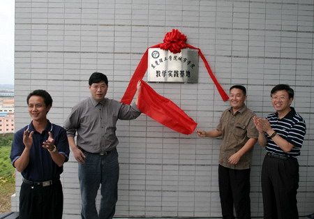 5月18日,城市学院教务处处长邓成良,文学与艺术系主任张林,学生处副处长、招生办与就业指导办副主任陈建新以及40多名师生在大岭山镇东江纵队纪念馆,举行“东莞理工学院城市学院教学实践基地”挂牌仪式。 邓处长代表学院感