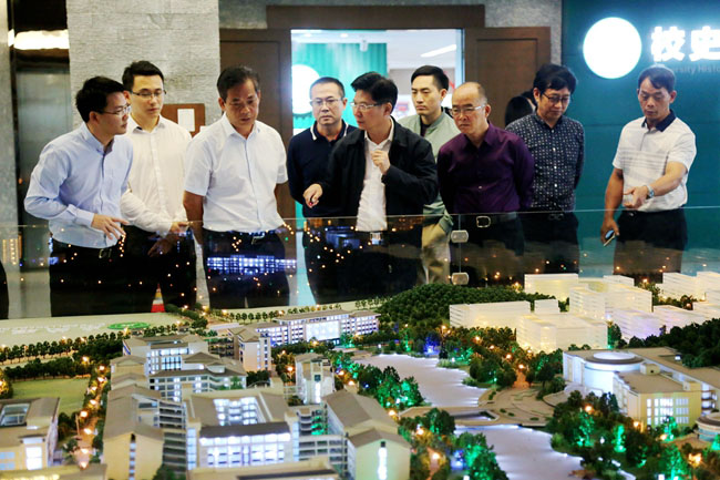 在院长王卫平、学院董事长代表陈超群的陪同下,梁荣业书记参观考察了校史展厅、商科虚拟仿真实践教学中心、创意设计学院、图书馆、学生食堂等。