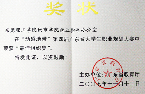 据悉,由广东省教育厅主办的职业规划大赛于今年5月10日正式启动,大赛主题是:规划精彩人生,打造锦绣前程。我院共有2086人参赛,并以1039份作品在全省100多所高校中位居第四名。