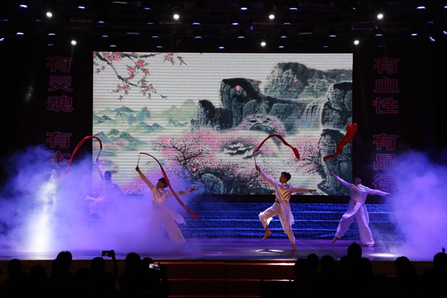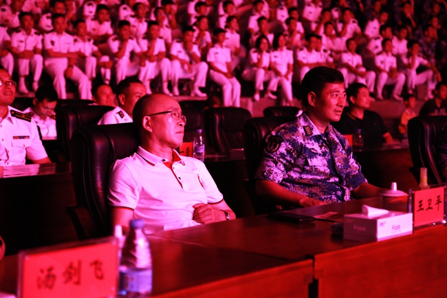 当晚,“军营开放日”活动还举行了“强军梦  南海魂  水兵情”——庆祝人民海军成立70周年文艺晚会,军民同台献上一台精彩纷呈的文艺演出。我院大学生艺术团应邀表演了《盛世鸿姿》《不忘初心》《我的秘密》《百年之韵》《我和我的祖国》等多个节目,优美的舞蹈、美妙的歌声、高昂的朗诵,为官兵们呈上了一台精彩绝伦的艺术盛宴。