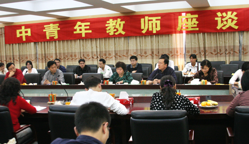 11月15日,学院在315会议室召开中青年教师座谈会。院长安少华教授、党委书记朱志德、党委副书记朱冰,以及学院办公室主任王玉,总务处、学生处处长章德胜副教授到会听取了30多位中青年教师的意见。