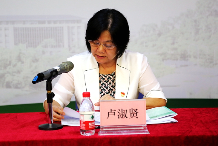 东莞市委主题教育第十一指导组组长卢淑贤、副组长覃何贵及指导组成员,学校党政领导班子、中层干部、各党总支(直属)书记、副书记、各二级学院师生党员代表参加了会议。