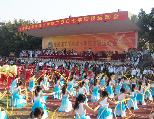 上午8时,运动会举行开幕式和运动员、裁判员入场式。东莞理工学院党委书记周致纳,东莞理工学院院长杨晓西教授,东莞理工学院副院长、城市学院院长安少华教授,学院董事会和监事会成员阮湘元、钟剑辉教授,学院党政领导朱志德、程发良、朱冰、张林,院督学林世俊教授,运动会主席团成员,学生会主席宋蜜蜜同学出席开幕式并在主席台就座。