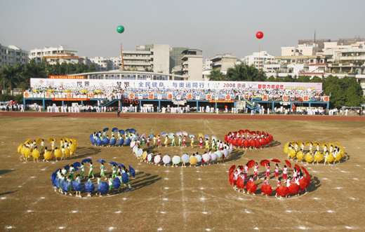 本次运动会以迎接北京奥运会为契机,“与奥运会同行”成为本届运动会的主题。这些年来,学院非常重视体育教学和体育工作,广泛开展了许多别具特色的体育运动,同学们可以根据自己的爱好选择体育锻炼项目。