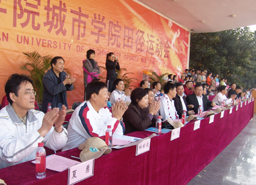 东莞理工学院党委书记周致纳宣布运动会开幕,城市学院副院长程发良教授致开幕辞。