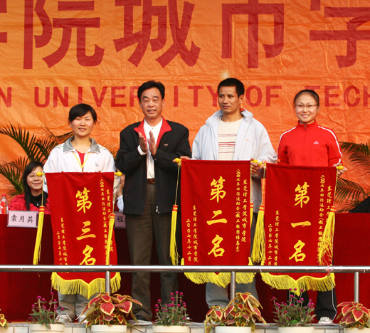 为期两天的城市学院2007年田径运动会12月1日胜利闭幕。下午5时,运动会在田径场举行了隆重的闭幕式。出席闭幕式的领导和嘉宾有:东莞理工学院副院长、城市学院院长安少华教授,城市学院党政领导朱志德、程发良、朱冰、张林,院督学林世俊教授,各系部负责人以及广东太阳神饮用水有限公司东莞分公司经理助理、校友袁月英女士。