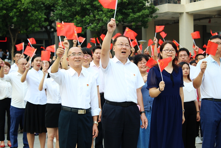与把感情放在心底相比,诉诸歌声更让人心潮澎湃。戴上党徽,挥舞国旗,站进队伍,原本不自信的胆怯便烟消云散,不由自已地引吭高歌起来。身为共产党员,“不忘初心,牢记使命”,我们更应把歌声中的情感用行动展现出来。祝愿祖国繁荣昌盛!