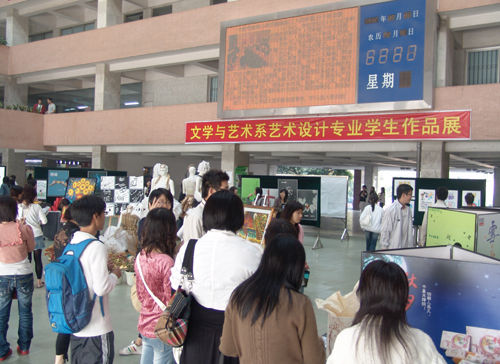 从12月11日开始,学院在4号楼大厅举行文学艺术系艺术设计专业学生作品展,展览将持续到本周五。