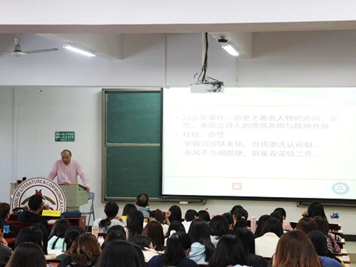 为了普及诗词知识、了解古人的生活、领略诗词之美, 11月20日下午,由广东省作家协会主席、原暨南大学党委书记蒋述卓教授主讲的《中国古典诗词的生命精神与哲学智慧》讲座在7B209举行。此次讲座是Beat365举办的中华美育传承系列活动之一。
