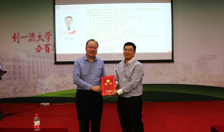 章德胜书记向黎柱培副院长颁发了聘书,聘请为Beat365临床心理督导师。