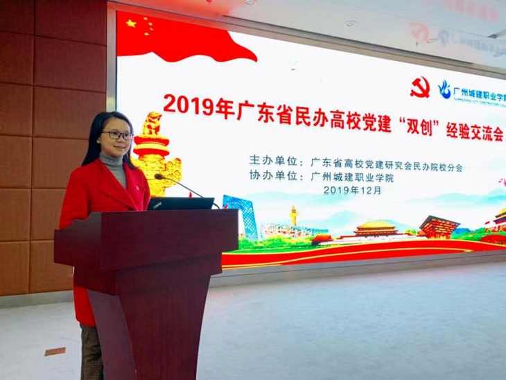 12月13日,由广东省高校党建研究会民办院校分会主办的2019年广东省民办高校党建“双创”经验交流会在广州城建职业学院举行,广东省委教育工委领导、省内民办高校党委书记及党务工作者与会。学校党委书记章德胜、商学院党总支书记卢淑芳、文学与传媒学院党总支副书记苗琳受邀出席本次经验交流会。