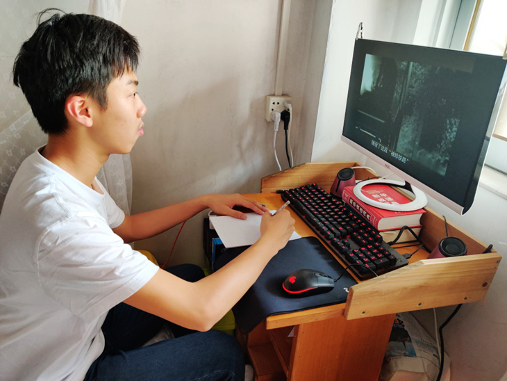 线上学习的感觉没有面对面讲课来的融入,并且因为网络卡等原因效果未必很理想,不过我们听力老师曾婧恒老师会比在学校时多给我们休息的时间,我能很明显地感受到了效率的提高。但还是希望疫情早点结束,快点开学吧,我还是更想念我在宿舍的课本笔记呀。
