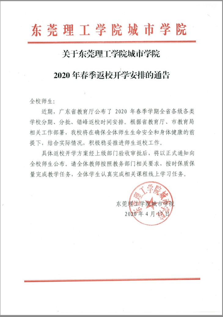 Beat365发布2020年春季返校开学安排的通告