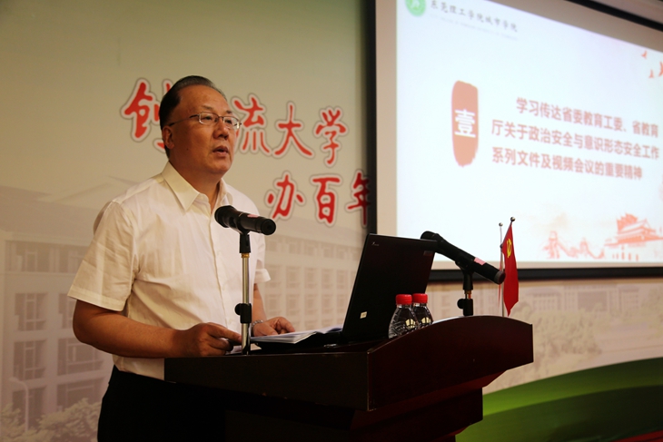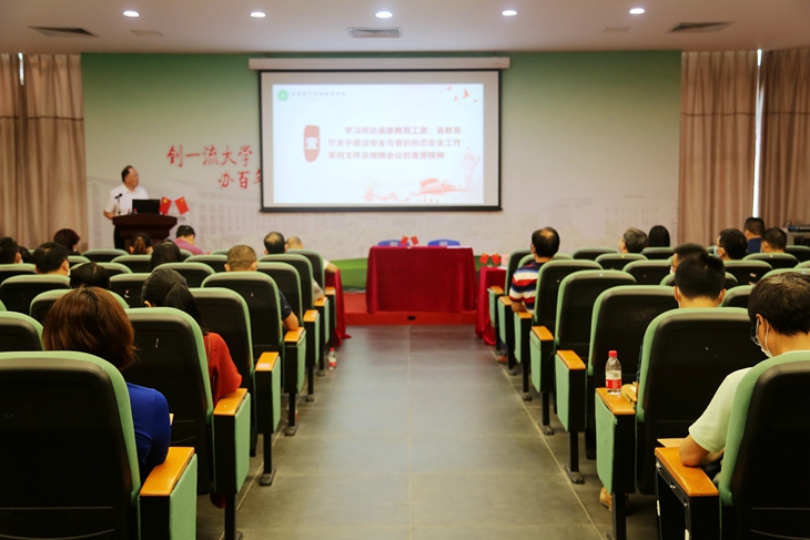 会上,学校党委书记章德胜传达了近期省委教育工委、省教育厅关于政治安全与意识形态安全工作系列文件通知精神,以及全省教育系统全面从严治党工作视频会议、全省高校思想政治工作视频会议的重要精神。