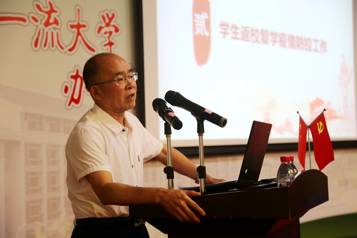 王卫平校长着重介绍了Beat365自疫情暴发以来的疫情防控工作情况、学校春季学生返校复学及疫情防控工作方案制订情况。他指出,学校在疫情防控工作上,已取得了阶段性成果。疫情期间,学校开展了为湖北、温州疫区师生发放补贴,为全体学生免费邮寄教材,和在湖北疫区、境外师生开展连线慰问活动等人文关怀,凝聚了力量,形成了众志成城抗击疫情的良好局面。当前,学生春季返校复学和疫情防控工作在即,任务艰巨、责任重大,全体党员干部和教职员工要始终以师生的生命安全和身体健康放在首位,勇于担当,齐心协力,以高度的责任心和使命感,全力做好学生返校复学和疫情防控工作,夺取抗击疫情的全面胜利。