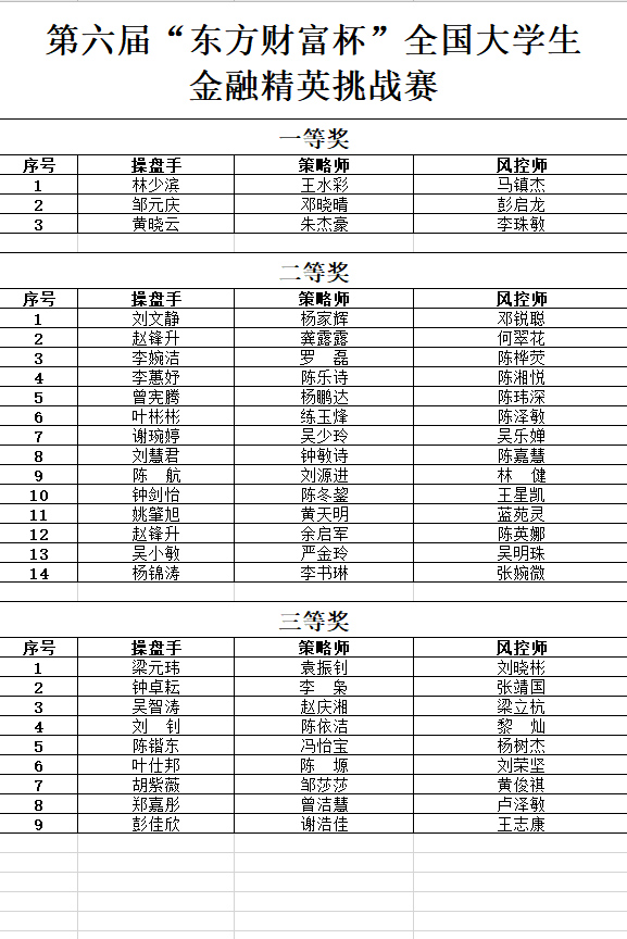 全国各高校获奖名单可以通过以下网址连接输入学校名称即可查询。https://young.eastmoney.com/xyds/dth2/H5/match/school.html?typeNum=100