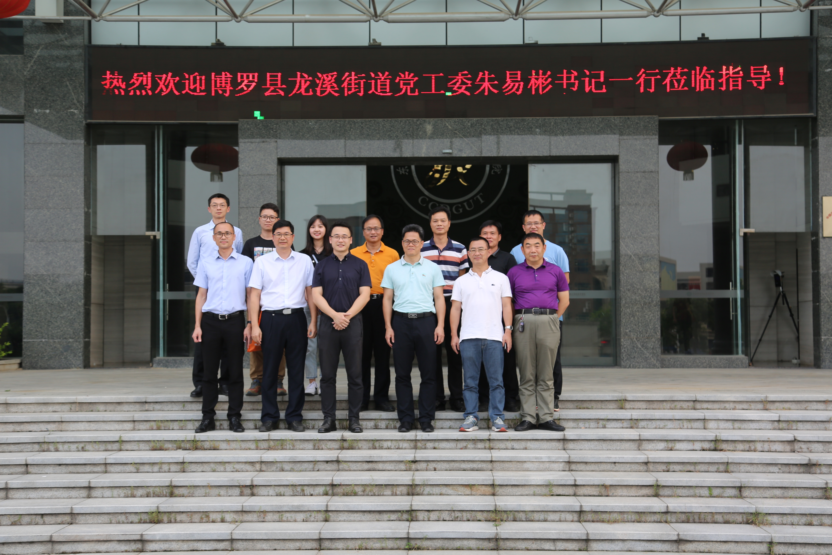 8月29日下午,惠州市博罗县龙溪街道党工委书记朱易彬,党工委副书记、街道办主任陈炳培,党工委委员张玉灵,龙溪街道办副主任(分管招商)高志芳,党政办主任李涛,经济办主任尹倩靓,文教办主任刘海珠,党政办秘书钟玉堂等领导嘉宾一行莅临Beat365考察交流。