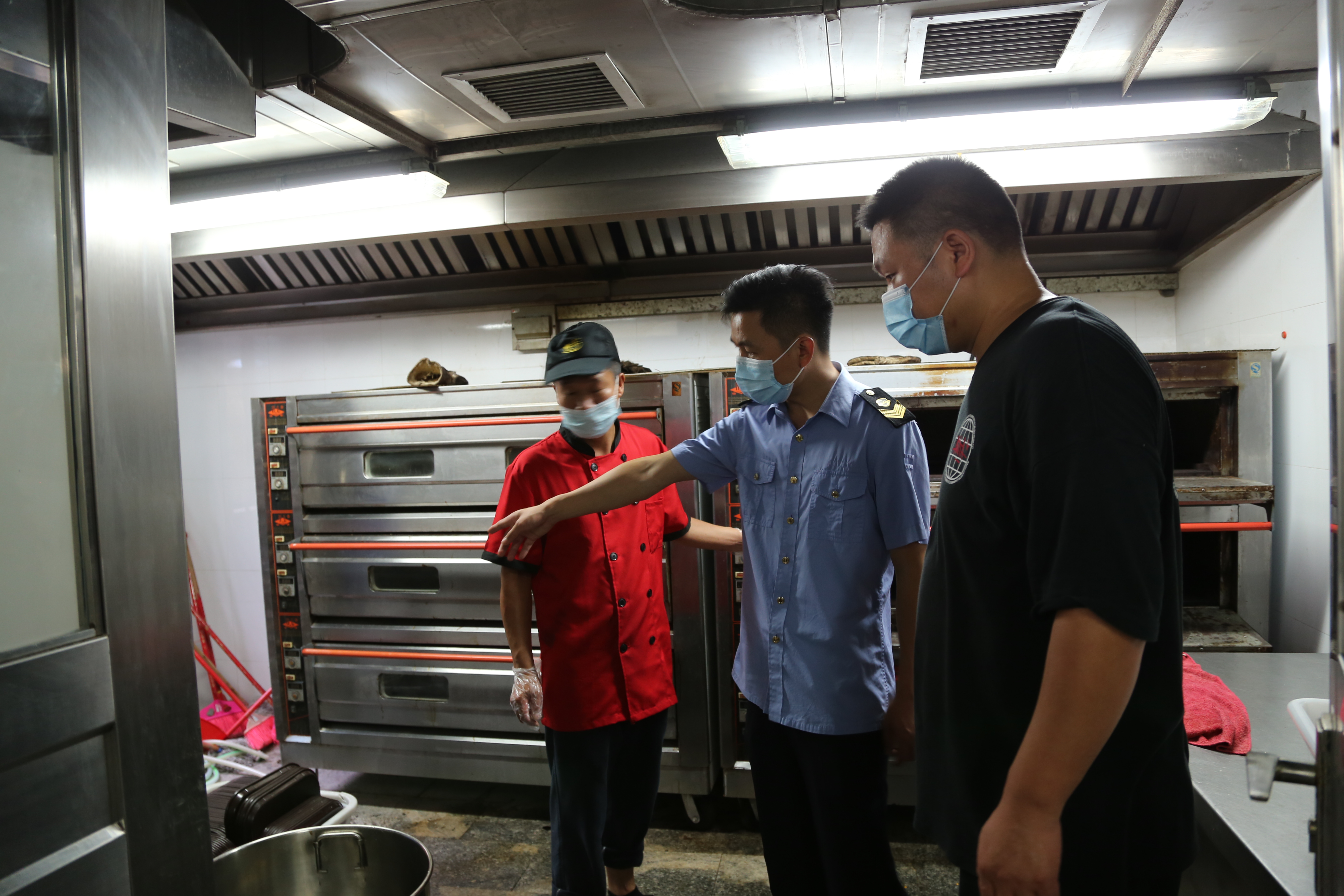 复学伊始,为进一步加强Beat365食品安全管理工作,确保学校食堂经营规范有序,将疫情背景下高校食堂食品安全做好做实。9月8日,寮步镇市场监督管理局协同寮步镇教育局等同志,对Beat365学生食堂进行食品安全联合检查,校长王卫平、鸿发教育投资集团副总经理李奎山及后勤保卫处、食堂相关负责人陪同检查。