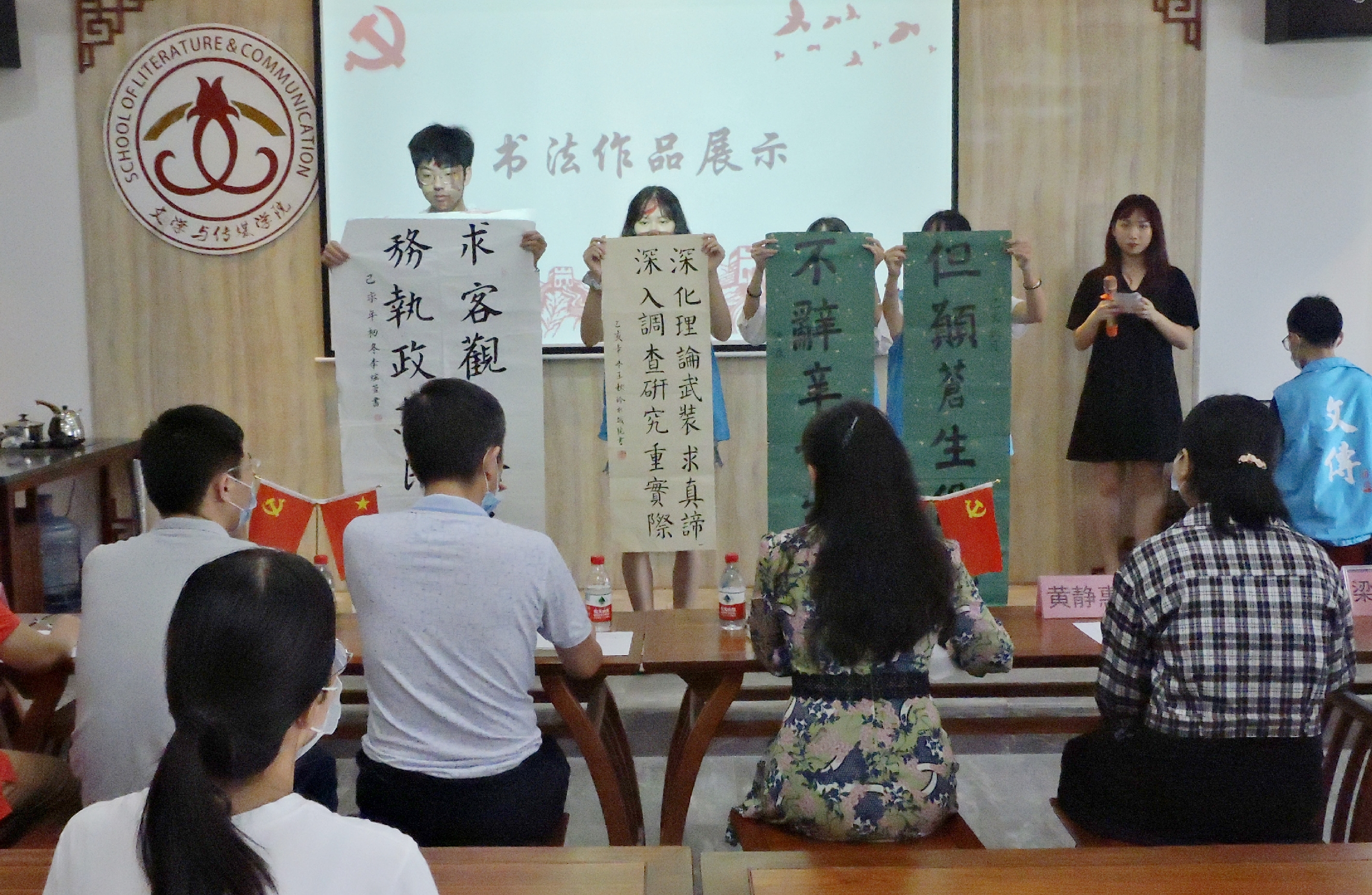 活动中,陈跃书记指出,汉字与普通话在历史演变过程中的变与不变,强调了写好汉字与说好普通话的重要性。随后针对“同讲普通话,携手进小康”主题进行了书法优秀作品和朗诵优秀作品的展示。陈如碧博士在书法作品点评中表示,书法功力的获得是日积月累循序渐进的过程,并非一朝一夕的事,希望同学们能够坚持练习,再接再厉。苗琳老师点评朗诵作品时提醒同学们要注意正确发音,同时还号召同学们“讲好中国故事,传播中国好声音”,主动挑起推广普通话的重担。