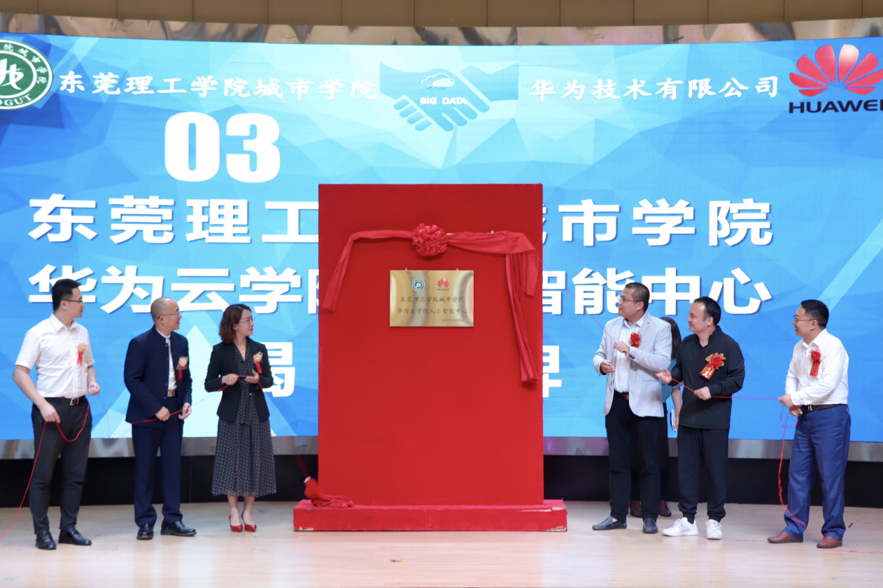 10月29日下午,东莞理工学院城市学院华为云学院人工智能中心揭牌暨“华为创新班”开班仪式在城市学院学术报告厅隆重举行。广东省教育厅相关领导、广东华为技术有限公司人才发展与人才生态总监孟令金、东莞政企业务部总经理肖勇、东莞华为云总经理万成、行业总监黄炜瑜;神州数码华为云南区销售总监彭炜能、云南区生态总监严冰凤;大疆创新校企合作负责人杨铎;广州粤嵌通信科技股份有限公司董事长钟锦辉,副总裁李春飞、邓人铭,产教融合事业部总经理蓝天明;商汤教育事业部总监马振瑞等。学校董事长代表陈超群及学校领导班子成员,教务处、学生处、各二级学院相关负责人,以及学生代表出席了活动。